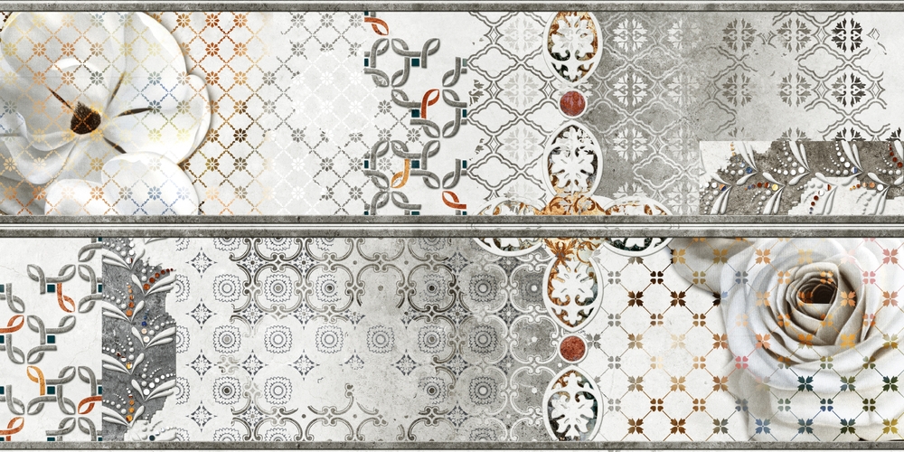För att förhöja intrycket av mönstrad kakeldekor kan kompletterande inredningsdetaljer användas. Handdukar och badrumsmatta i ton med dekoren förstärker helhetskänslan, medan kromade eller svarta beslag och armaturer skapar en grafisk kontrast. Spegelramar i trä eller marmorplattor runt dekorområdet ger ytterligare texturdjup.